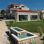 Kuća za odmor u Betini s pogledom na more, terasom, klima uređajem, WiFi-om smještena je blizu Muzeja Betinske Drvene Brodogradnje i nudi terasu te grijani bazen. Gosti također mogu uživati na sunčanoj balkonu. Naglasci ove nekretnine uključuju besplatno parkiralište i sef.